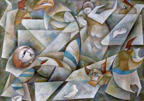 Walter Prolingheuer arbeitet die zeitlosen Fragen mythologischer Erzählungen in aktuelle Bezüge ein. Die Gestaltung seiner Bilder bringt die Situationen im Zusammenspiel von Abstraktion und Konkretion auf den Punkt.